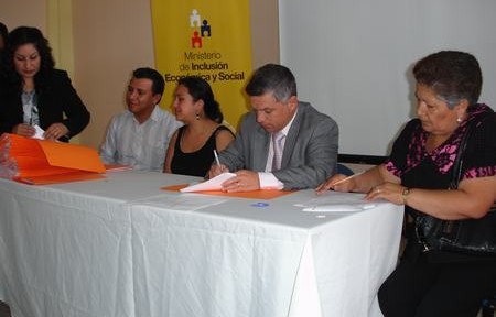 Micro y pequeños proveedores, artesanos y productores de Loja, Macará, Zapotillo y Celica que confeccionarán juguetes para los niños y las niñas que reciben atención en los Centros Infantiles del Buen Vivir y a través de la modalidad Creciendo con Nuestros Hijos firmaron hoy contratos.