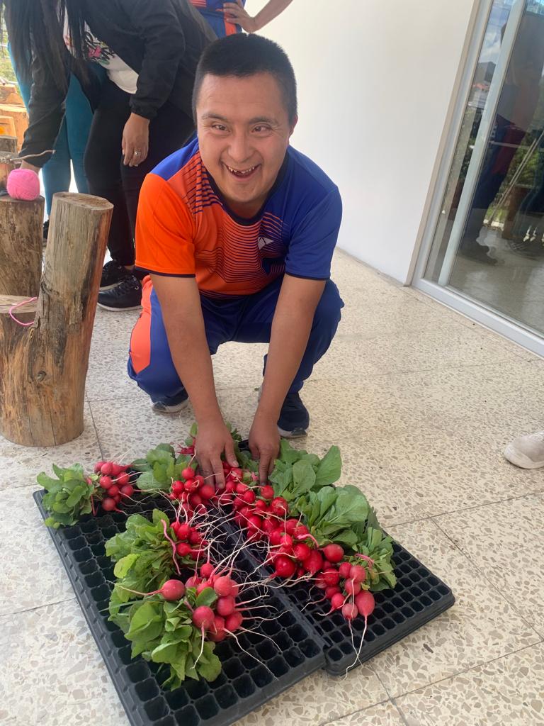 Joselyn es usuaria del Centro Diurno y precisó que está contenta por los aprendizajes recibidos referentes a agricultura, ya que conocen cómo se prepara la tierra, el proceso de sembrado de los productos (sin uso de químicos), riego diario, limpieza de maleza, etc. Además, comentó que todos estos cultivos son utilizados para el consumo diario y, en algunos casos, para la venta.