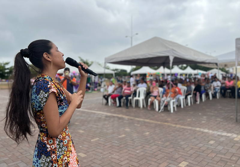 Nancy Valarezo, cuidadora de una persona con discapacidad, agradeció por este emotivo reconocimiento, con música y bailes, y por la atención que le brinda el equipo técnico del MIES.