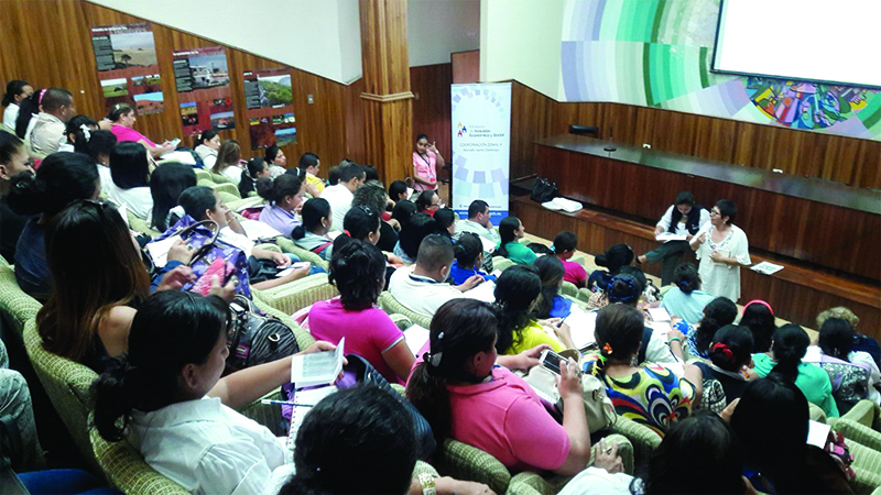 90 educadoras y educadores de desarrollo infantil del Ministerio de Inclusión Económica y Social (MIES) participaron en el taller “Formador de Formadores”. La actividad, que es parte del proceso Escuela de Familias, se realizó el 18 y 19 de febrero en el Salón de Actos Culturales de la Universidad Técnica de Manabí.