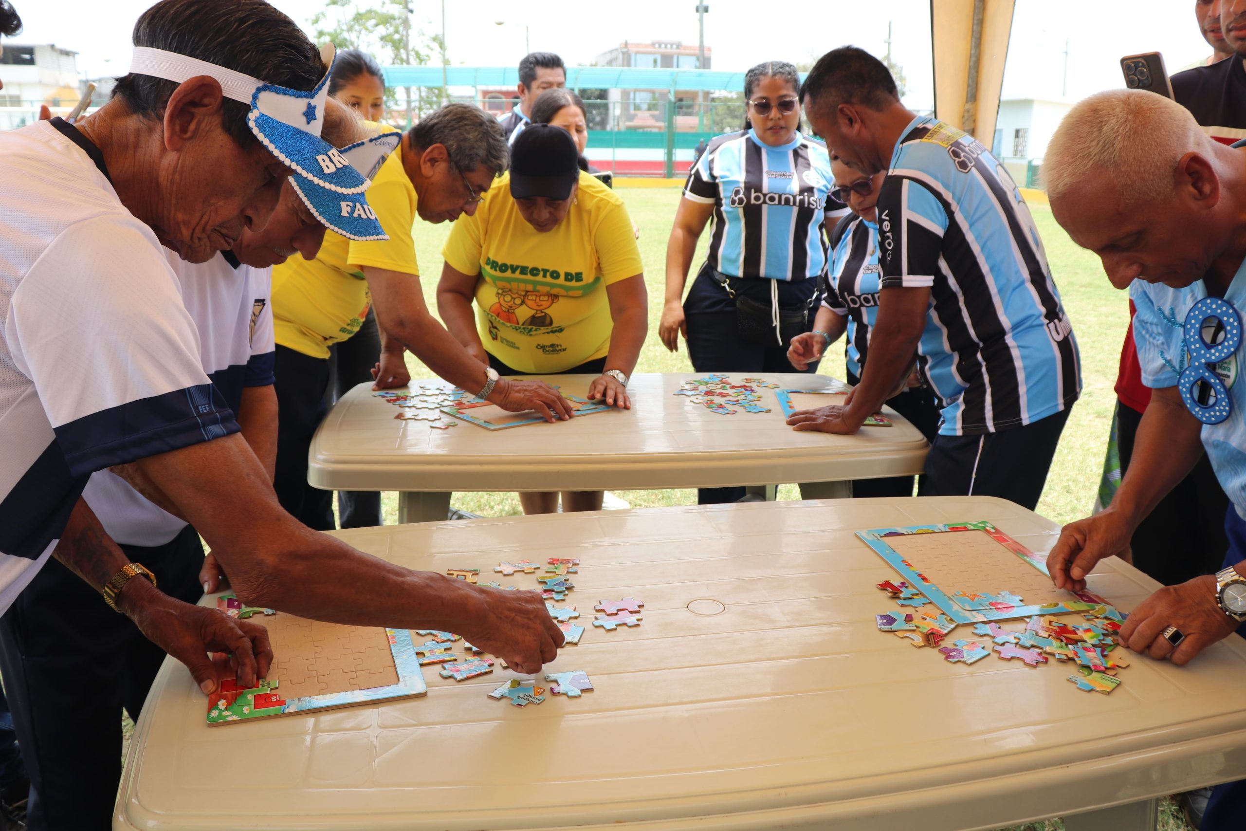 La cancha deportiva “Melesio Suárez” fue el escenario en donde las personas adultas mayores efectuaron varias actividades como encestado de balones, el armado de rompecabezas, torres de tuercas, entre otras actividades lúdicas, que tuvieron como objetivo promover un envejecimiento digno, activo y saludable.