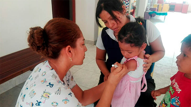 Las brigadas médicas del MSP están vacunando a los infantes desde el 16 de enero. Por su parte, las educadoras de desarrollo infantil realizan un seguimiento del carnet de vacunación y coordinan con las familias la presencia de los infantes.