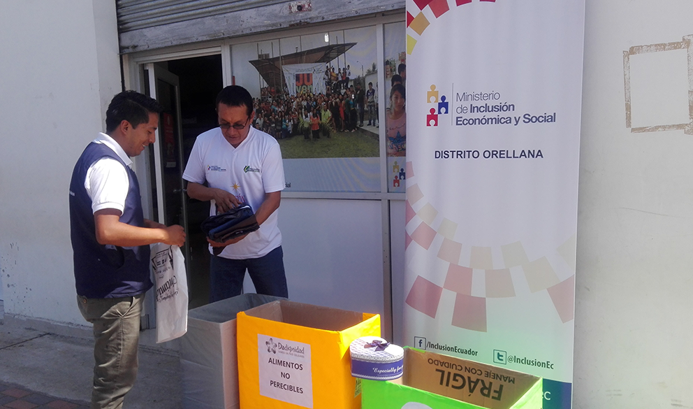 Hasta el momento se han recibido 2.497 donaciones de: ropa, juguetes y alimentos no perecibles, como parte del programa de Erradicación de la Mendicidad y la campaña “Da Dignidad” promovida por el Ministerio de Inclusión Económica y Social (MIES). La ciudadanía de los cantones Francisco de Orellana y Loreto continúa entregando sus donaciones en los puntos Da Dignidad, ubicados en las oficinas del MIES, Municipalidad Francisco de Orellana y el Ministerio de Desarrollo Urbano y Vivienda.