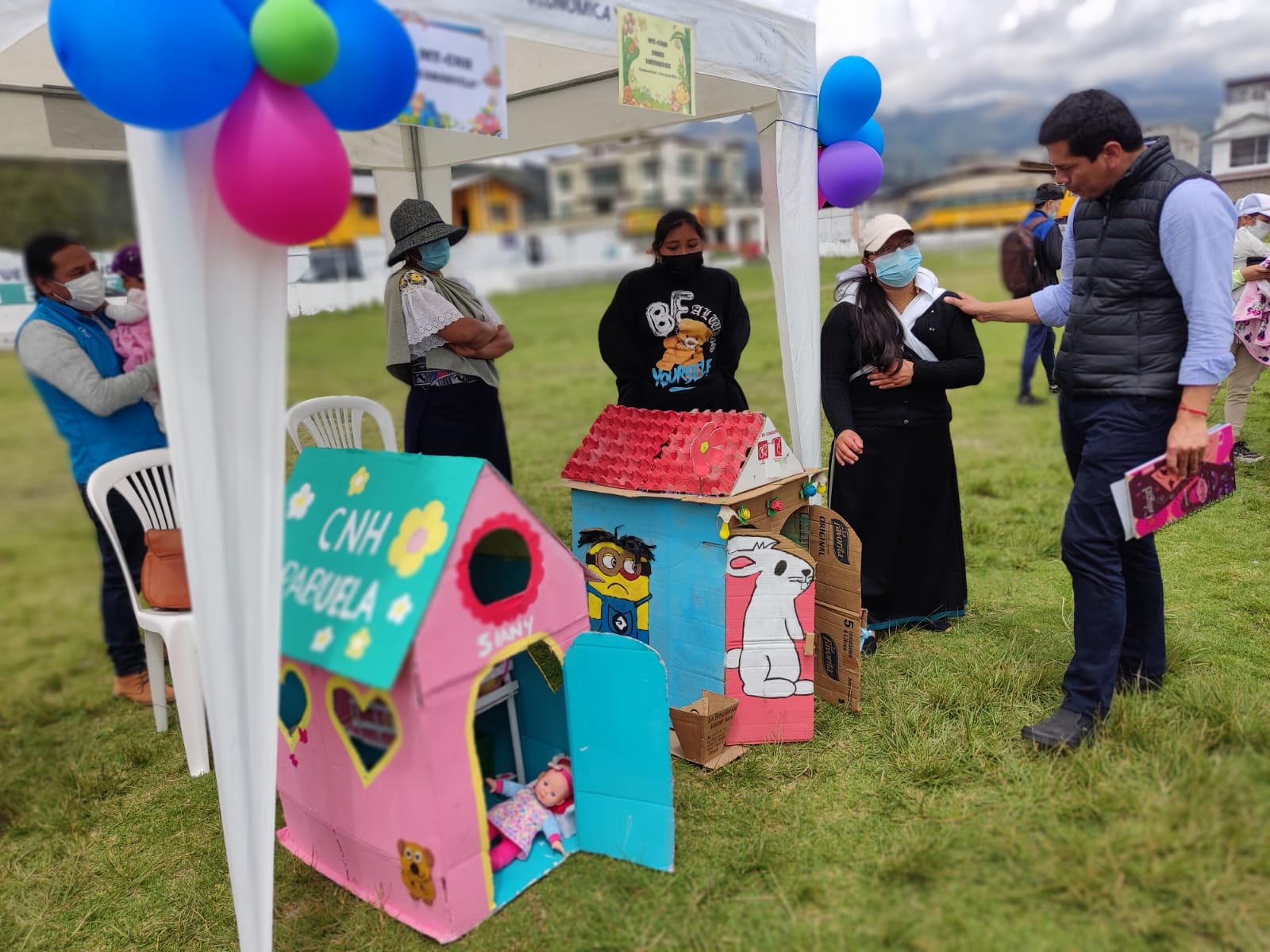 En Otavalo, con el objetivo de crear en los hogares entornos protectores, seguros y agradables para el desarrollo y estimulación de niñas y niños de 0 a 3 años de edad, que reciben los servicios en las Unidades de Atención Creciendo con Nuestros Hijos (CNH), la Coordinación Zonal 1 del Ministerio de Inclusión Económica y Social (MIES) organizó el concurso de cajones lúdicos elaborados con material del entorno y reciclado. En esta actividad participaron educadoras con las madres y padres de los infantes usuarios de los servicios de 25 Unidades del cantón Otavalo.