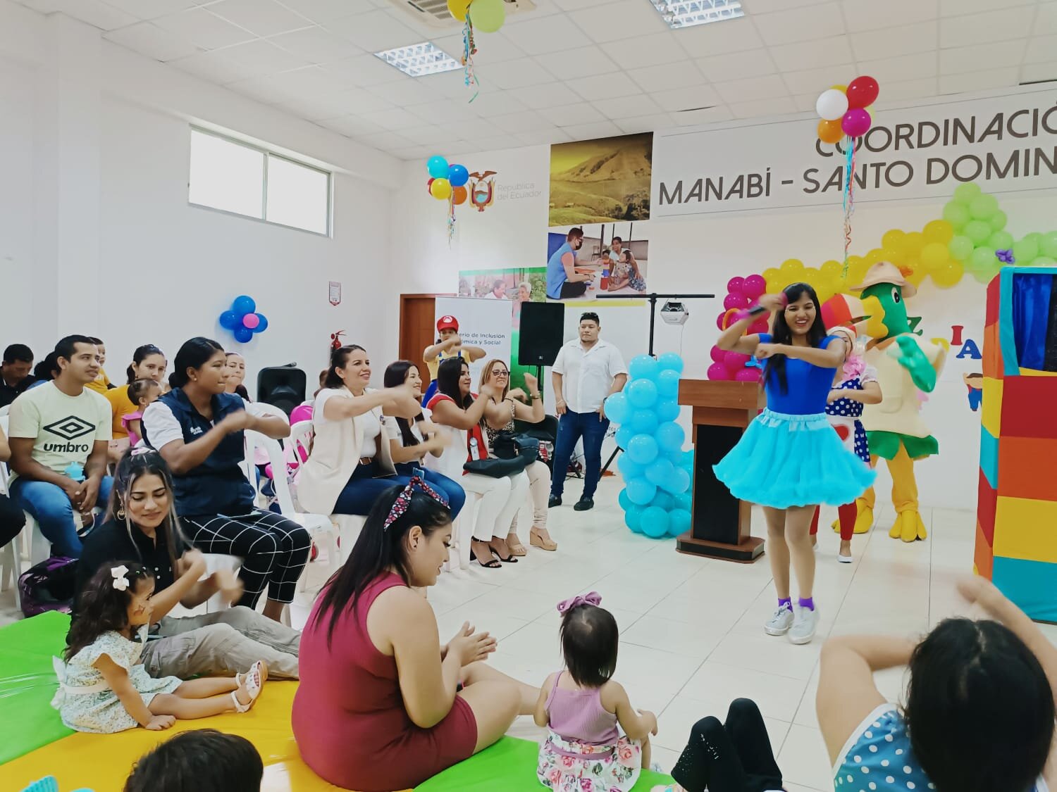 Un total de 150 niñas, niños y sus madres, usuarios de los servicios de desarrollo infantil del Ministerio de Inclusión Económica y Social (MIES) del distrito Portoviejo, disfrutaron de una actividad recreativa preparada por las educadoras y personal técnico, para conmemorar el Día del Niño, que en nuestro país se celebra el 1 de junio.