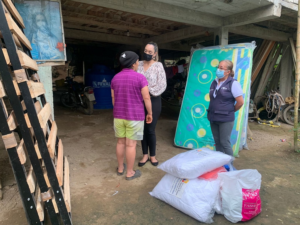 El MIES entregó colchones, sábanas, prendas de vestir y otros enseres para este núcleo familiar, que lo integran cuatro personas, dos adultos y dos menores de edad.