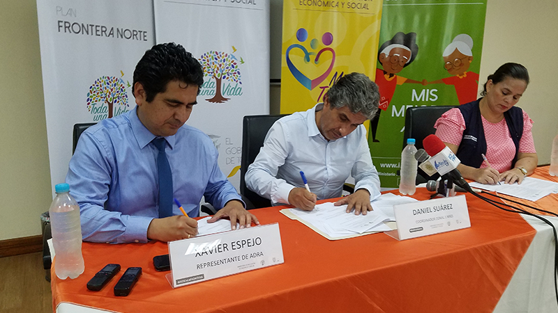 El convenio busca garantizar el cumplimiento y restitución de derechos de personas en condición de movilidad humana en la frontera norte. La firma del acuerdo tuvo como contrapartes a la Directora del MIES (E) en Sucumbíos, Carmen Almeida y por parte de la Agencia ADRA, Xavier Espejo, y como testigo de honor Daniel Suárez, coordinador Zona 1 del MIES.