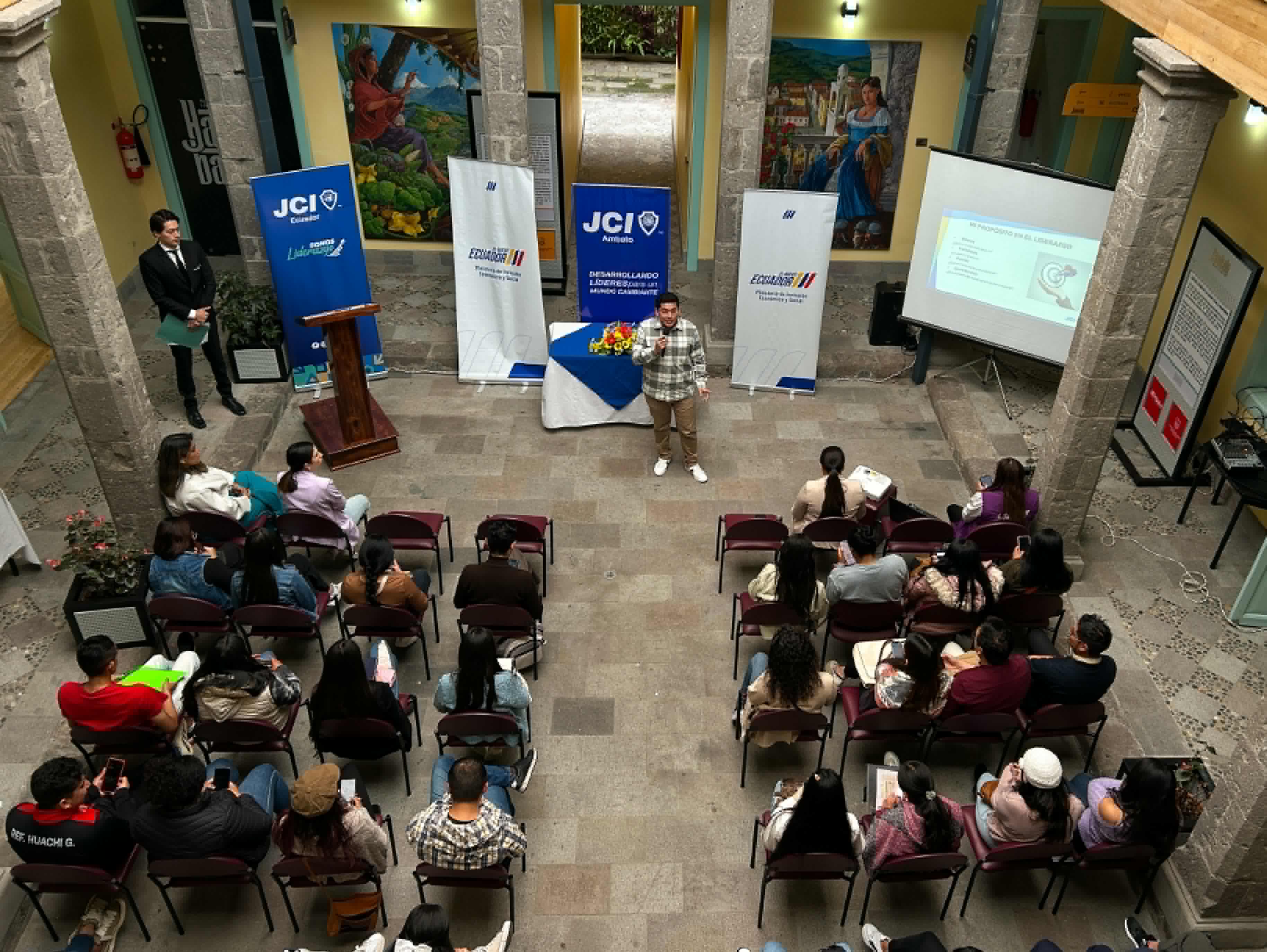 En el marco del Mes de la Juventud, el Ministerio de Inclusión Económica y Social (MIES), en coordinación con la Cámara Junior Internacional (JCI) Ambato, desarrolló el foro “Liderando Juventudes” en el Museo Hambatu, con la participación de 60 jóvenes de la provincia de Tungurahua.