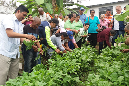 Estudiantes de la Universidad Técnica Estatal de Quevedo (UTEQ), que están vinculados a la Misión Leonidas Proaño, trabajan con adultos mayores del gerontológico de Quevedo en la implementación de huertos orgánicos, producción de hortalizas y plantas medicinales.