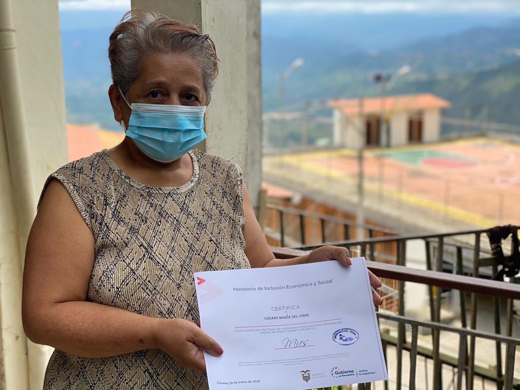 Andrea Ordóñez, recibió la noticia de que ya puede acercarse a cobrar el bono de contingencia, lo que la llenó de satisfacción, pues será muy útil para ella y su pequeña hija. “No tengo más que agradecimiento para el Gobierno del presidente Lasso y al MIES, por atender a las familias afectadas”, mencionó. Ella y los demás beneficiarios podrán realizar su cobro de acuerdo al último digito de su cédula el 22 de enero. Así mismo, el adulto mayor, Augusto Portilla, expresó su alegría de que se haya concretado la ayuda económica para las familias “de mi parte, muchas gracias, por estar pendiente de nosotros y llegar con las ayudas humanitarias”, comentó.