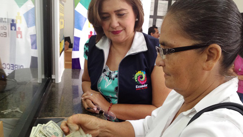 María Basurto es una de las beneficiarias del Bono de Acogida. Ella acogió en su vivienda a su abuelita al día siguiente del terremoto. María se acercó a una de las ventanillas de BanEcuador en El Empalme y retiró los 150 dólares que entrega el Estado. “Estoy feliz por la iniciativa del Gobierno Nacional, esta ayuda alivia varias preocupaciones económicas de mi casa y nos permite atender mejor las necesidades para quienes tenemos un familiar que perdió sus pertenencias y que ahora está en nuestra casa. El bono me ayudará a darle más comodidades a mi abuela”, señaló.