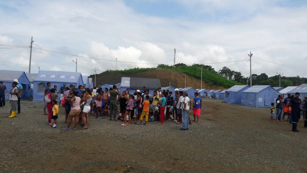 “Se verificó que las familias, así como sus carpas no hayan presentado algún tipo de daño”, comentó Cecilia Ruano, gestora del MIES en el albergue Muisne 3.