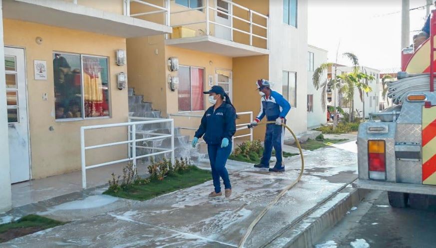 En coordinación con los GAD Municipales, las viviendas fueron fumigadas y se desinfectaron las áreas comunales como calles y parques. Además, las comisiones de seguridad lideradas por los vecinos, visitan cada uno de los hogares para socializar las medidas de prevención y evitar el contagio.