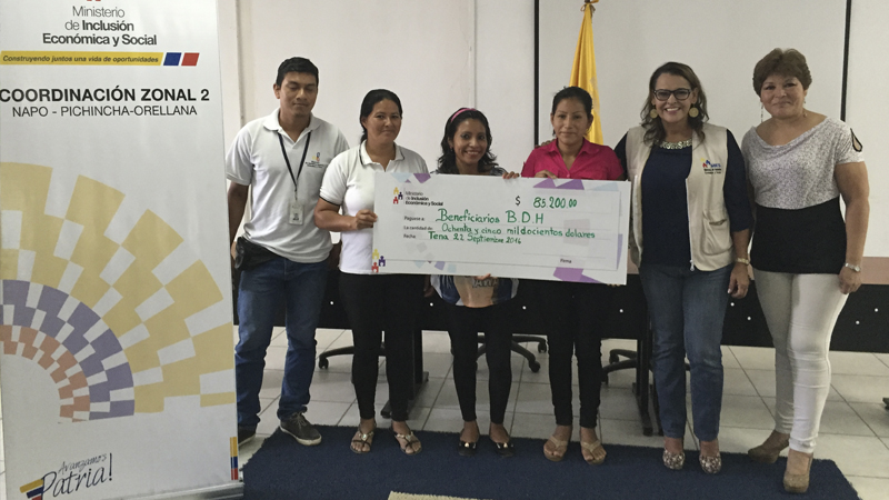 El Ministerio de Inclusión Económica y Social (MIES) entregó en la provincia de Napo 71 nuevos Créditos de Desarrollo Humano (CDH) por un monto de 85.700 dólares para fortalecer emprendimientos en producción de cacao de familias de las comunidades Rukullacta y Alto Shikama, cantón Archidona; y Chonta Punta, cantón Tena.