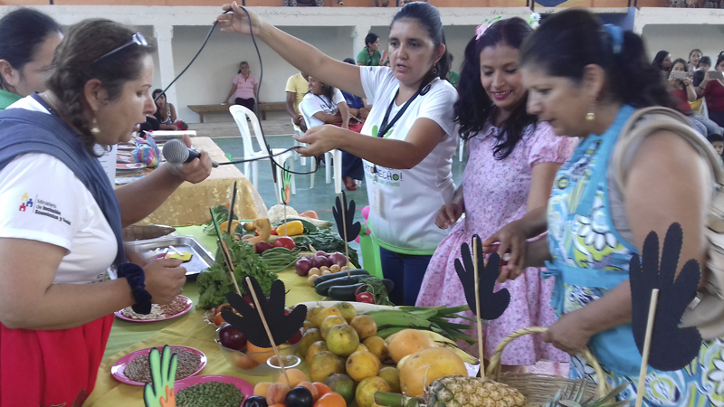 Durante el evento se expusieron recetas preparadas a base de alimentos nutritivos; madres, padres y educadoras de los Centros Infantiles del Buen Vivir (CIBV) y la modalidad Creciendo Nuestros Hijos (CNH) participaron en juegos, concursos, dramatizaciones y charlas sobre la nutrición infantil.