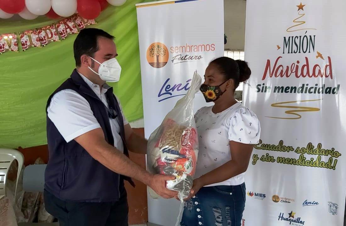 A través de emotivos actos que incluyeron juegos, villancicos y el tradicional chocolate con pan, un total de 80 familias que pertenecen al proyecto Erradicación Progresiva de la Mendicidad del cantón Huaquillas recibieron kits de alimentación, caramelos y juguetes. La dotación de víveres de primera necesidad se cumplió en el marco del convenio interinstitucional entre el Ministerio de Inclusión Económica y Social (MIES) y el Gobierno Autónomo Descentralizado Municipal.