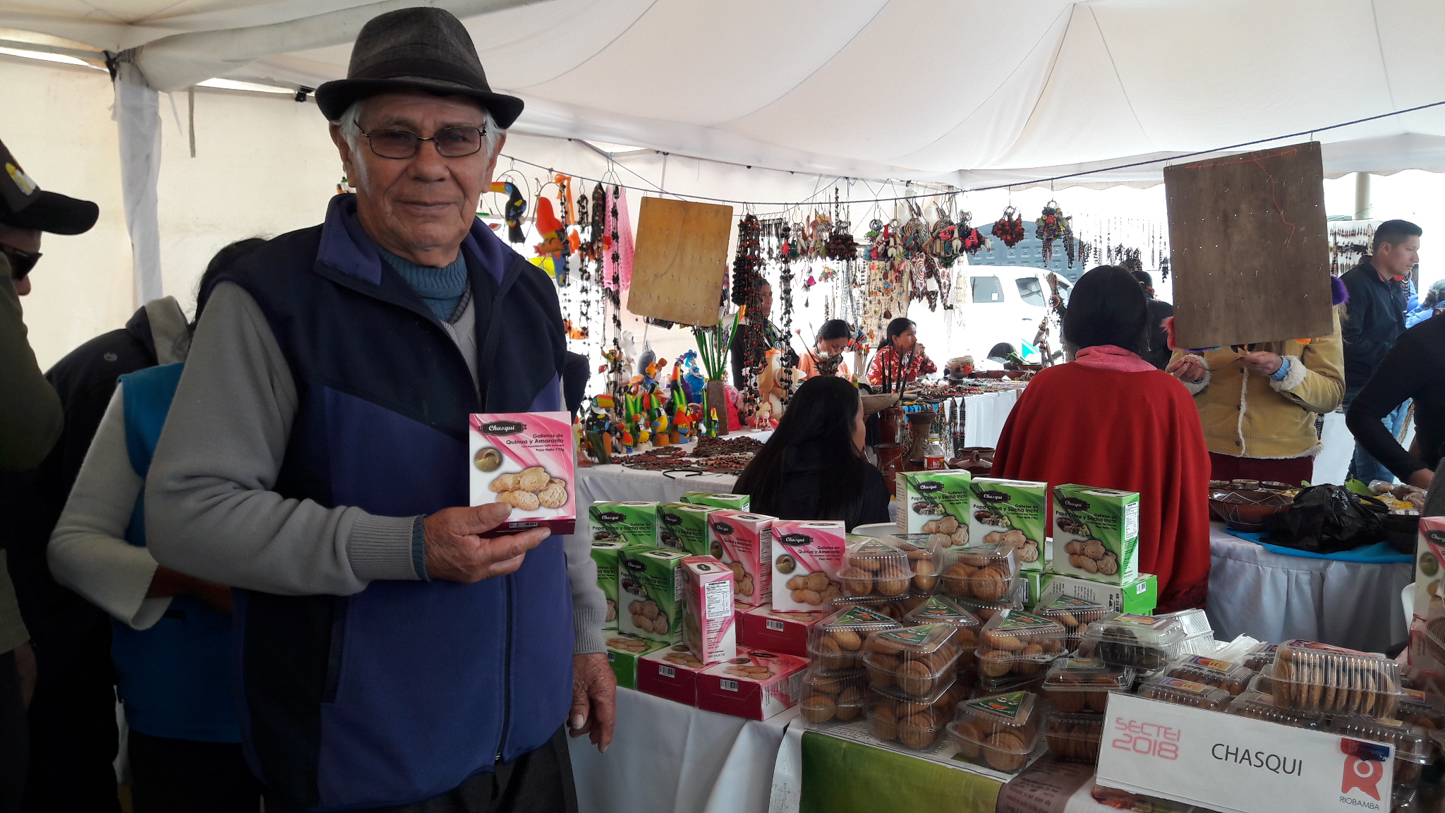 De igual forma, Carlos Pazmiño, de la provincia de Chimborazo, a sus 82 años de edad elabora junto a su esposa, galletas de quinua, sacha inchi y papa china, productos que cuentan con registro sanitario y se expenden en empaques adecuados para la comercialización.