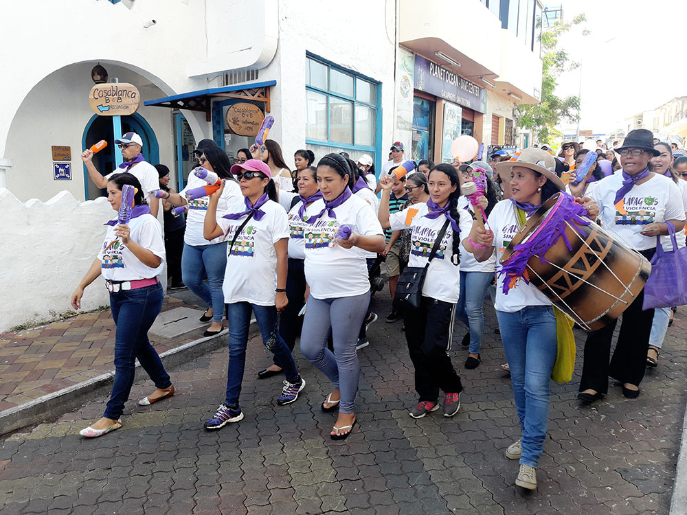 Decenas de mujeres que son usuarias de los servicios que brinda el Ministerio de Inclusión Económica y Social (MIES) en el distrito Galápagos participaron en la marcha denominada “Dejando huellas por nuestros derechos”, que recorrió las principales avenidas y calles del cantón San Cristóbal. La actividad se efectuó en conmemoración del Día Internacional de la Mujer.