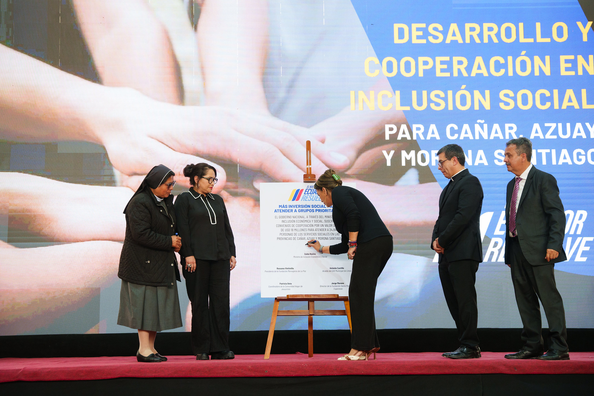 Azogues, Cañar. – El Gobierno Nacional en este 2025 fortalecerá el sector social. Esta mañana, 14 de enero de 2025, el Ministerio de Inclusión Económica y Social (Mies) anunció la suscripción de 3.000 convenios con organizaciones de la sociedad civil, gobiernos autónomos descentralizados y organizaciones no gubernamentales. Asimismo, el Banco de Desarrollo del Ecuador (BDE) entregó financiamiento para obras de los cantones Suscal, Cañar y Biblián.