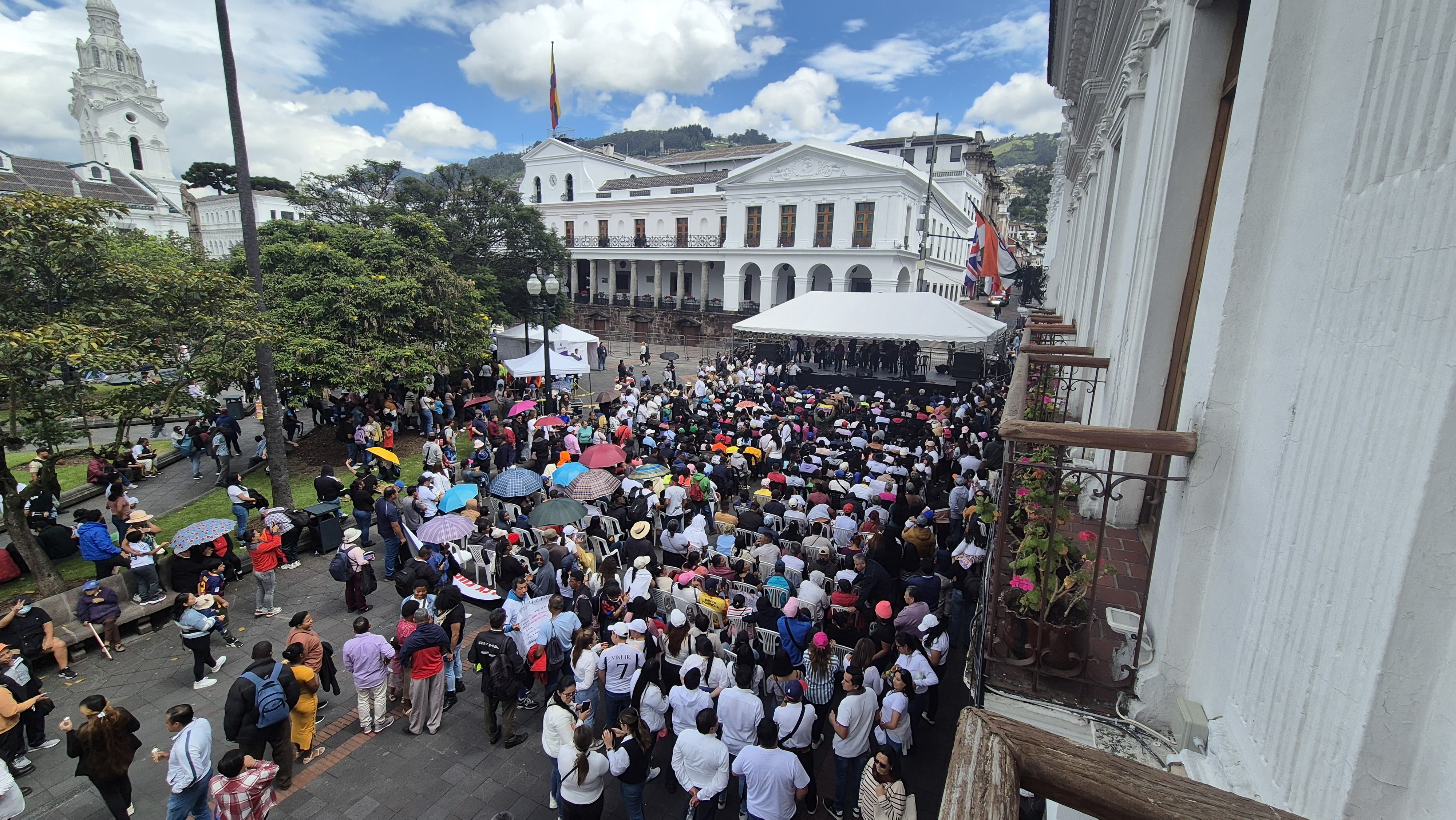 Quito, Pichincha.- Este sábado 31 de mayo de 2025, en la Plaza Grande, el Gobierno Nacional en cumplimiento a la medida de reparación contemplada en la Sentencia 1072-21-JP/24, esclavitud moderna en Furukawa emitida por la Corte Constitucional del Ecuador, ofreció disculpas públicas a los más de 300 afectados.