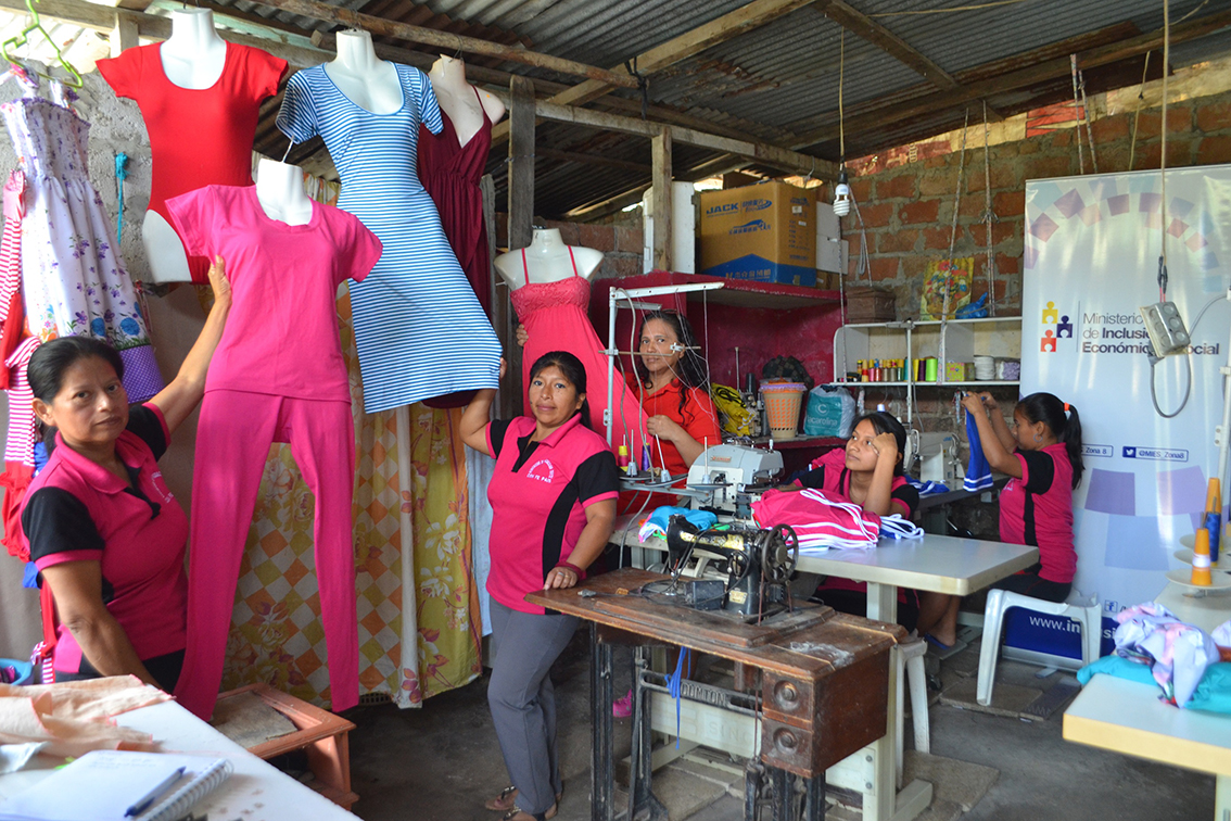 Producto del acompañamiento que reciben por parte del Ministerio de Inclusión Económica y Social (MIES), un grupo de 10 mujeres usuarias del Bono de Desarrollo Humano (BDH) del cerro San Eduardo, del norte de Guayaquil, constituyeron una organización a la que denominaron ASOTEXCOFEP (Asociación de Producción Textil con Fe País), que tiene como finalidad dedicarse a confeccionar prendas de vestir.