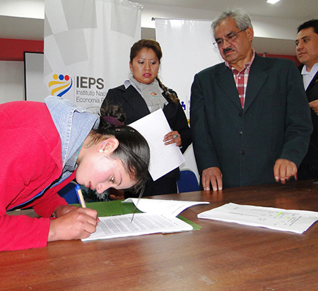 El Instituto de Economía Popular y Solidaria (IEPS), institución adscrita al Ministerio de Inclusión Económica y Social (MIES) entregó  créditos asociativos a 210 familiares indígenas y campesinas para promover la productividad y el emprendimiento. El evento se realizaró en el Auditorio del MIES Riobamba ubicado en Las Palmeras y Junín a partir de las 10h00.