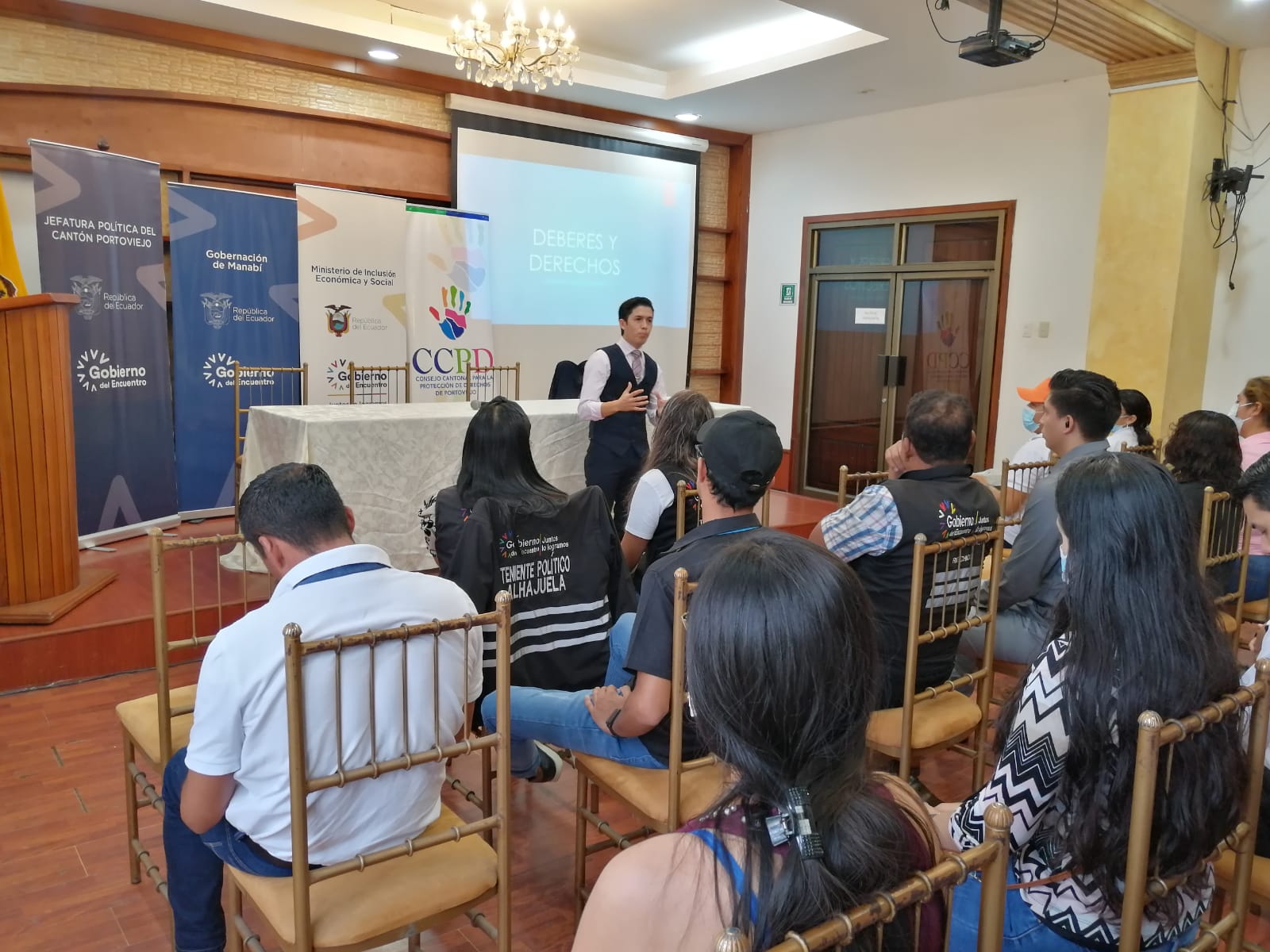 Con el objetivo de brindar herramientas a los jóvenes para la prevención de la violencia intrafamiliar, la coordinación zonal 4 del Ministerio de Inclusión Económica y Social (MIES) junto con el consejo cantonal de Protección de Derechos de Portoviejo, la Jefatura Política y la Organización World Vision, realizaron el seminario Protección de Derechos en Adolescentes y Jóvenes los días 5, 6 y 10 de mayo en la capital manabita. Al evento asistieron 65 líderes de organizaciones juveniles de las diferentes parroquias urbanas y rurales del cantón.