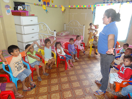 En los Centros Infantiles, la jornada laboral (excepto el fin de semana) es de 6 a 8 horas diarias, con la supervisión de una Coordinadora de Desarrollo Infantil y promotoras comunitarias. Este servicio contempla los componentes de salud, nutrición, educación, recreación, apoyo familiar y cuidado diario.