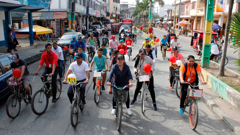 El paseo en bicicleta inició en la Playa La Fortuna de Salitre y se dirigió hasta el Coliseo Municipal, en donde se realizó un evento para conmemorar el Día Mundial Contra el Trabajo Infantil.