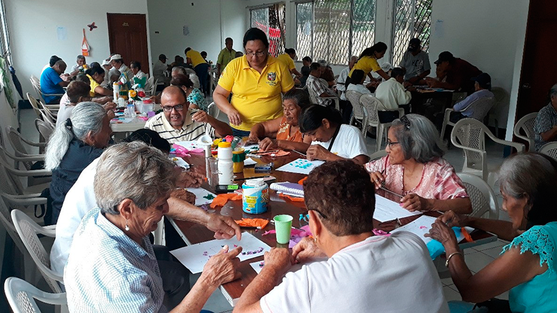 Gertrudis y Víctor son parte de los 90 adultos mayores que reciben atención y cuidado en este centro diurno que brinda atención a este sector de la población a través de un convenio entre el Ministerio de Inclusión Económica y Social (MIES) con el gobierno municipal del cantón 24 de Mayo. La atención es de lunes a viernes, desde las 08h00 hasta las 16h00, en donde participan de diferentes actividades como: manualidades, bailo terapia, expresión artística, paseos, y alfabetización.