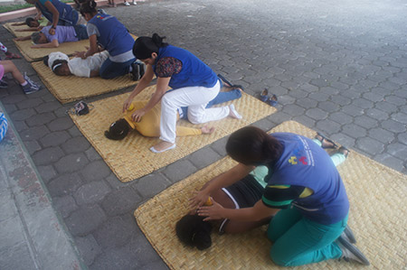 Los asistentes llegaban presurosos unos en sillas de ruedas, otros guiados por su bastón blanco, algunos con mejor suerte llevados de la mano de sus familiares. Si bien la invitación fue en especial para las personas con discapacidad y los adultos mayores, ello no impidió para que se reúnan con sus respectivas familias. En fin, la ocasión fue propicia para un encuentro de alegría y para recuperar fuerzas perdidas tras la rutina de los lunes a viernes, según señalaron algunas madres, quienes tras recibir un reconfortante masaje con naranjas en su cuerpo, la esencia que expele la fruta con el roce y el propio masaje, quedaban restituidas para seguir con su trabajo en el hogar.