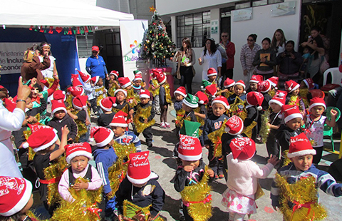 Alrededor de 90 niñas y niños del Centro Infantil del Buen Vivir (CIBV) “Carolina Terán”, disfrutaron junto a sus padres, maestras y la Ministra de Inclusión Económica y Social (MIES), Betty Tola, de la Navidad Revolucionaria organizada por los Comités de Familias de Desarrollo infantil.