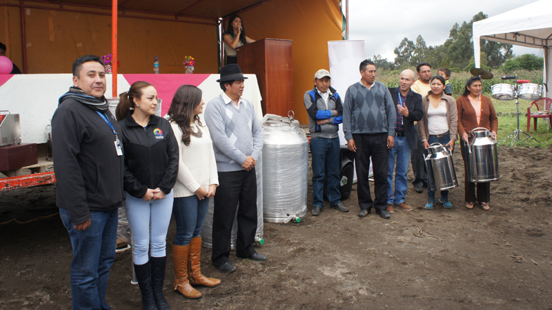 En Pastocalle, parroquia rural de Latacunga, se hizo la entrega simbólica de equipos a los beneficiarios del proyecto “Mejoramiento del sistema de acopio y comercialización de leche de pequeños productores”. Este proyecto está articulado a la Red de Lecheros de Cotopaxi. Los equipos y materiales recibidos el jueves, 7 de abril, permitirán mejor la calidad de los productos lácteos.