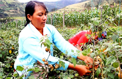 Desde muy temprano, antes del cantar de los gallos, doña Laurita como es conocida en su comunidad, junto a su esposo Jaime Andrango, sale a cuidar de sus cultivos, ellos dedican su tiempo a la producción de la uvilla.