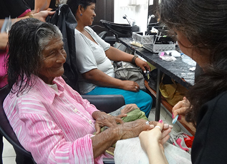 Las jóvenes de la academia de belleza Cuty Ycaza, de Guayaquil, se encargaron de mejorar la apariencia personal de 20 adultos mayores. Recibieron un tratamiento completo: manicure, corte de cabello, peinado y maquillaje.