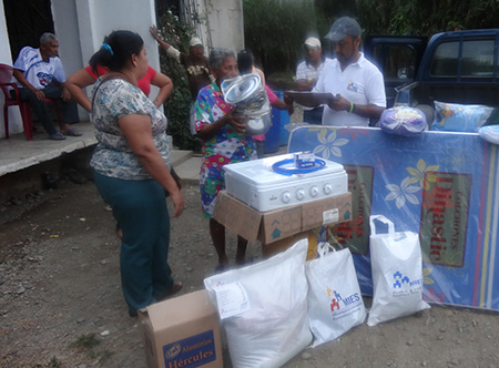 A la pareja se les entregó un colchón, sábanas, cobijas, toldos, ollas, cocina, cilindro de gas, platos, toallas, papel higiénico, repelente, raciones alimenticias. “Les agradezco mucho la ayuda. Nunca nos imaginamos que algo así nos podía pasar. Al menos no estamos solos, el Gobierno nos ayuda”, dijo Amaranta León, la afectada.