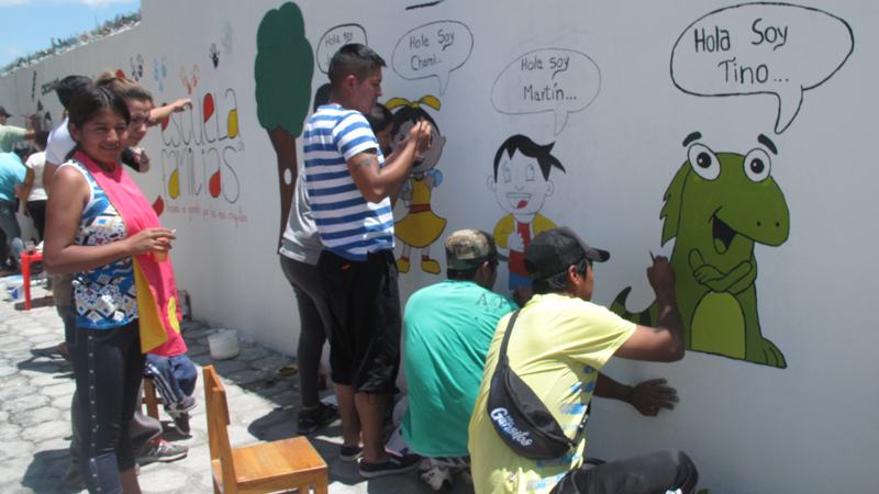 En el CIBV “Gotitas de Amor” del sector Mushuñan se realizó el mantenimiento de áreas verdes, el objetivo fue que los infantes tengan un ambiente propicio para su esparcimiento. En el CIBV “Mis Pequeños Querubines”, ubicado en el barrio Loreto de Sangolquí, madres y padres de familia se organizaron para pintar murales con temáticas como: personajes VEOVEO, Escuela de Familias, nutrición, la familia, y el medio ambiente.