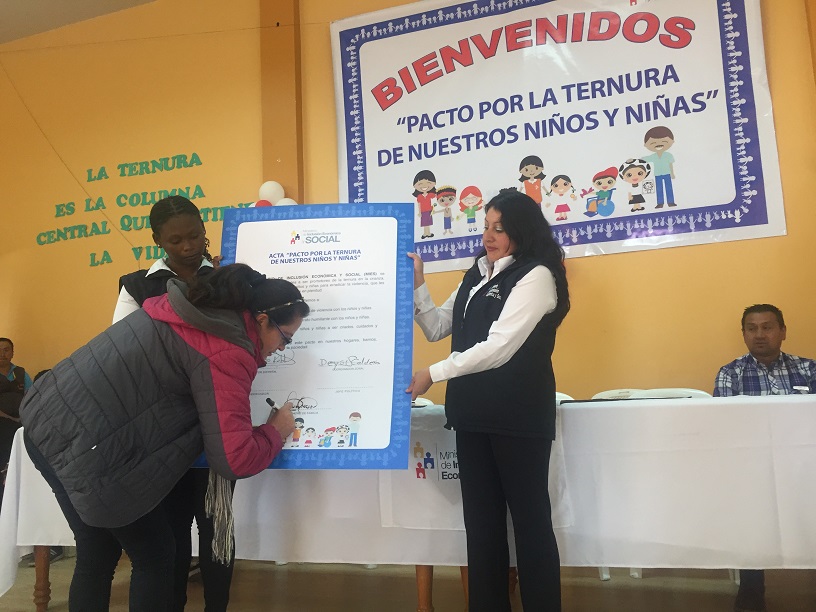 Alrededor de 100 madres y padres de familia usuarios de los servicios de los Centros Infantiles del Buen Vivir (CIBV) y la modalidad Creciendo con Nuestros Hijos (CNH) en los cantones Montúfar, Bolívar, Espejo y Mira, provincia de Tulcán, suscribieron un “Pacto por la ternura de nuestras niñas y niños”, durante un evento que realizó el Ministerio de Inclusión Económica y Social (MIES) en el marco de la Misión Ternura, programa que promueve el Gobierno Nacional.