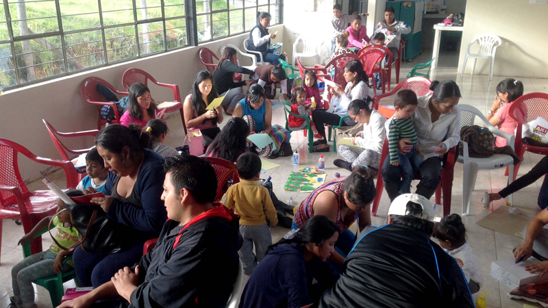 “Los integrantes del comité de familias recibieron algunas tácticas para que puedan brindar a los niños y niñas la confianza para animándolos a hablar, primero realizando pequeñas descripciones de objetos, o con canciones simples, e incluso textos para contar cuentos”, manifestó Katherine Armendáriz, coordinadora del CIBV.