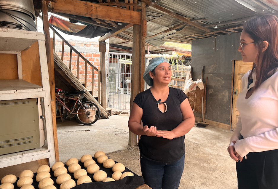 La coordinadora Blacio también visitó el hogar de Jenny Ortiz, quien destinó su crédito en la elaboración y comercialización de pan y pasteles. La emprendedora aseguró que, gracias a las capacitaciones recibidas por parte de la Unidad de Inclusión Económica del MIES, aprendió qué hacer para hacer producir más y de mejor calidad. “Esta es una gran oportunidad y debemos aprovecharla. Estoy lista para salir adelante”, comentó.