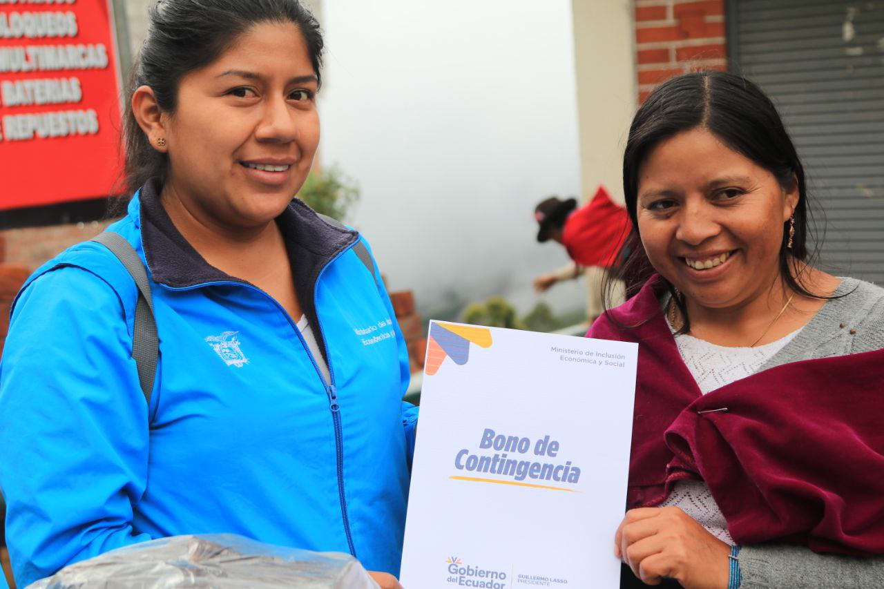 El Ministerio de Inclusión Económica y Social (MIES) lleva entregados un total de 4.176 Bonos de Contingencia por Eventos de Origen Natural o Antrópico a núcleos familiares damnificados por las emergencias que se han suscitado en el país desde enero de 2022 hasta mayo de 2023: sismo, deslizamientos de tierra, inundaciones, aluviones y colapsos estructurales. Para este fin, el Gobierno del Ecuador ha invertido cerca de USD de 987 mil