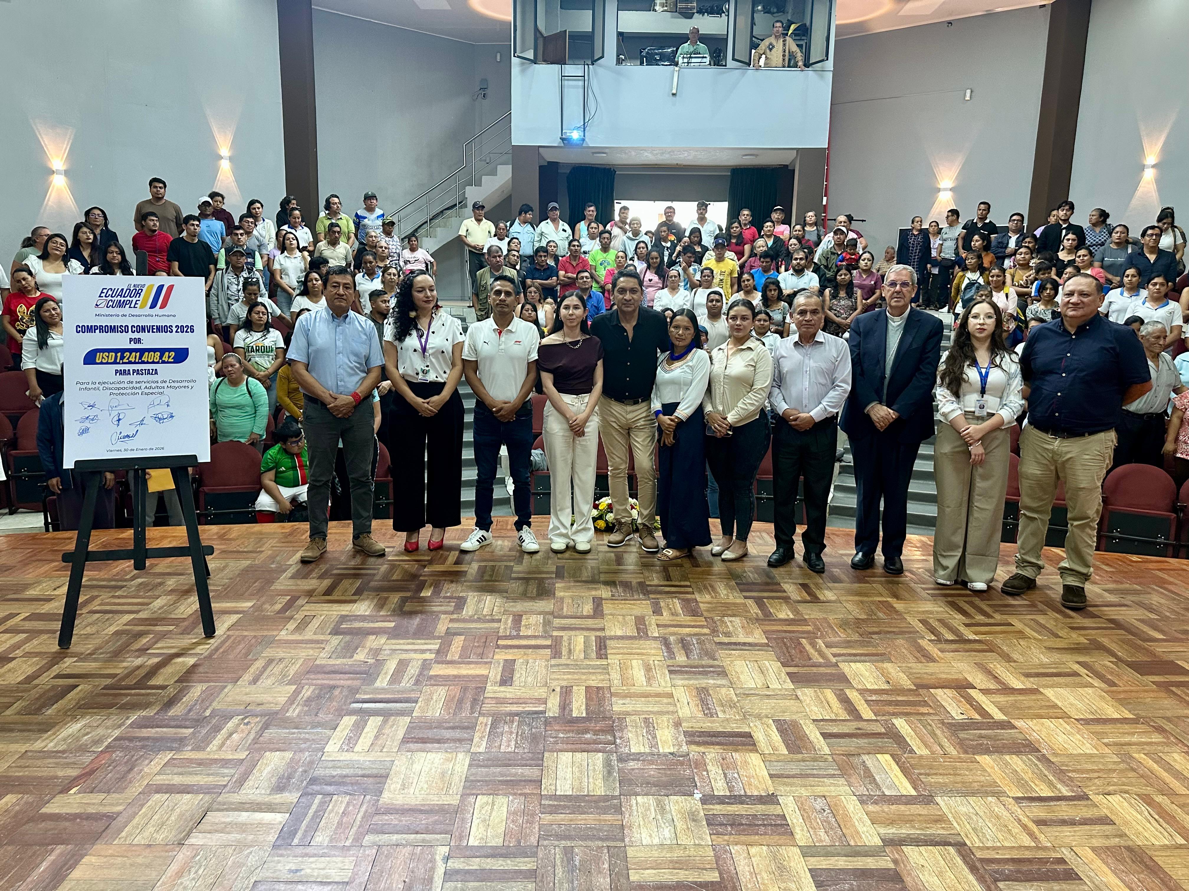 El Ministerio de Desarrollo Humano (MDH), a través de su Dirección Distrital en Pastaza, firmó convenios de cooperación técnica-económica con gobiernos parroquiales y cantonales, organizaciones de la sociedad civil y religiosas, con el fin de garantizar servicios integrales para 2.220 niñas, niños, adolescentes, personas con discapacidad, personas adultas mayores de esta provincia. Esto representará una inversión que supera el USD 1 millón.