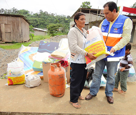 El Ministerio de Inclusión Económica y Social (MIES) en coordinación  con la Secretaría Nacional de Gestión de Riesgos acudió con raciones alimenticias, para socorrer a la familia damnificada que perdió su vivienda y fallecieron dos personas en la parroquia Chumunde del cantón Ríoverde, por el desbordamiento del Río Popa.