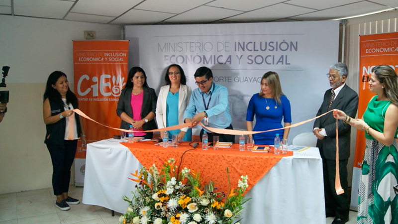 El Ministerio de Inclusión Económica y Social (MIES), inauguró este jueves 23 de mayo el “Centro de Inclusión Económica”, para fortalecer los procesos de emprendimiento del Bono y Crédito de Desarrollo Humano (CDH), así como de la Economía Popular y Solidaria (EPS) del norte de Guayaquil.