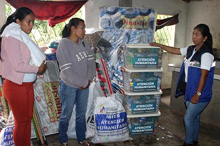 Elvira Licuy y Jimena Ashanga, madre e hija afectadas por el flagelo, recibieron kits de atención humanitaria los cuales consistían de: 4 kits de alimentos, 2 kits aseo, 5 kits de dormir, 3 kits de vajilla y 2 kits de limpieza familiar, según informó Ana Avilés, técnica de gestión de riesgos MIES.