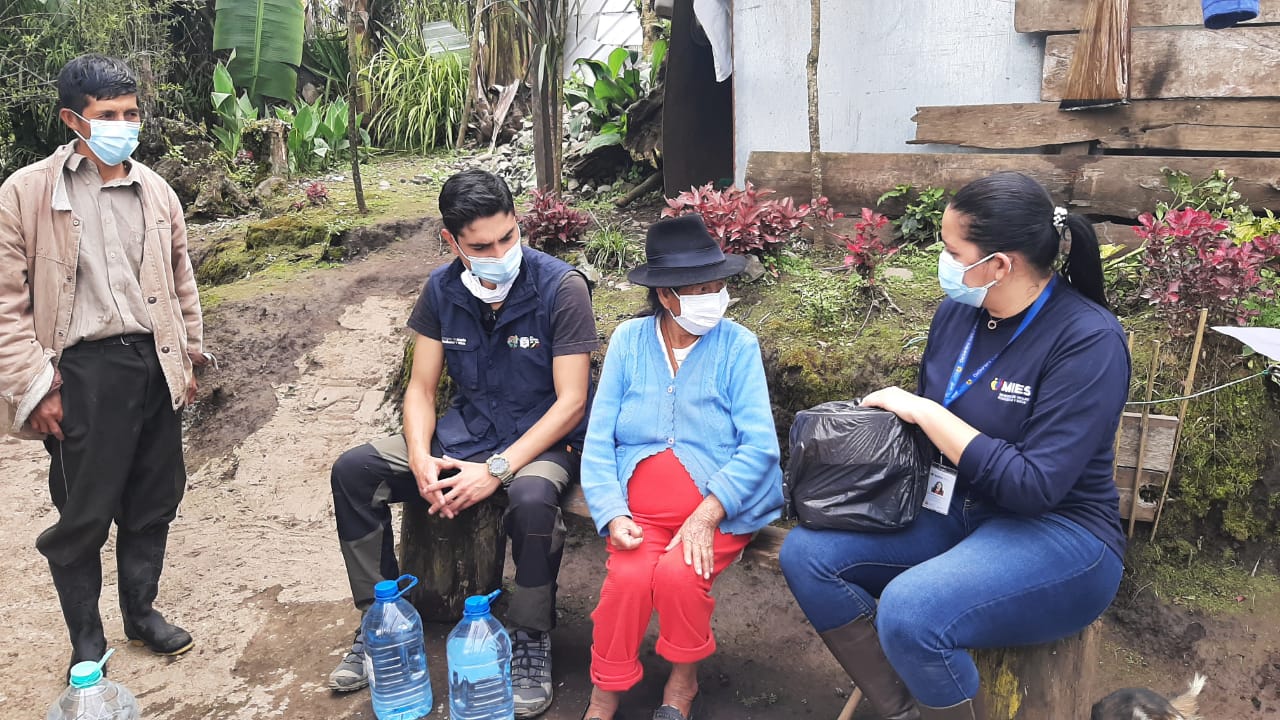 Una vez suscitado el fenómeno, funcionarios del distrito Guaranda del MIES realizaron llamadas a las y los usuarios para conocer su situación y acudir a levantar la información. Posteriormente, encabezados por el director distrital David Abril, entregaron ayuda humanitaria a las familias afectadas que consistió en: kits de bioseguridad, de ropa, botellones de agua y sacos de alimentos para el ganado.