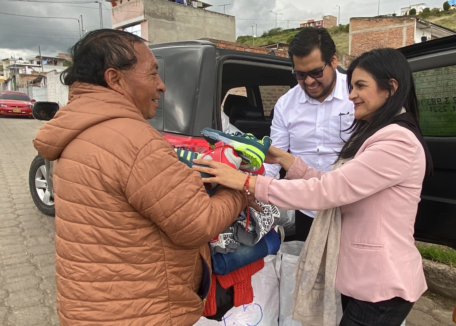 El Ministerio de Inclusión Económica y Social (MIES) entregó ayuda humanitaria en kits de vestido para los integrantes de ocho familias del sector de El Polígono, de la ciudad de Tulcán, quienes resultaron afectadas por un fuerte temporal que afectó a las viviendas de este sector.