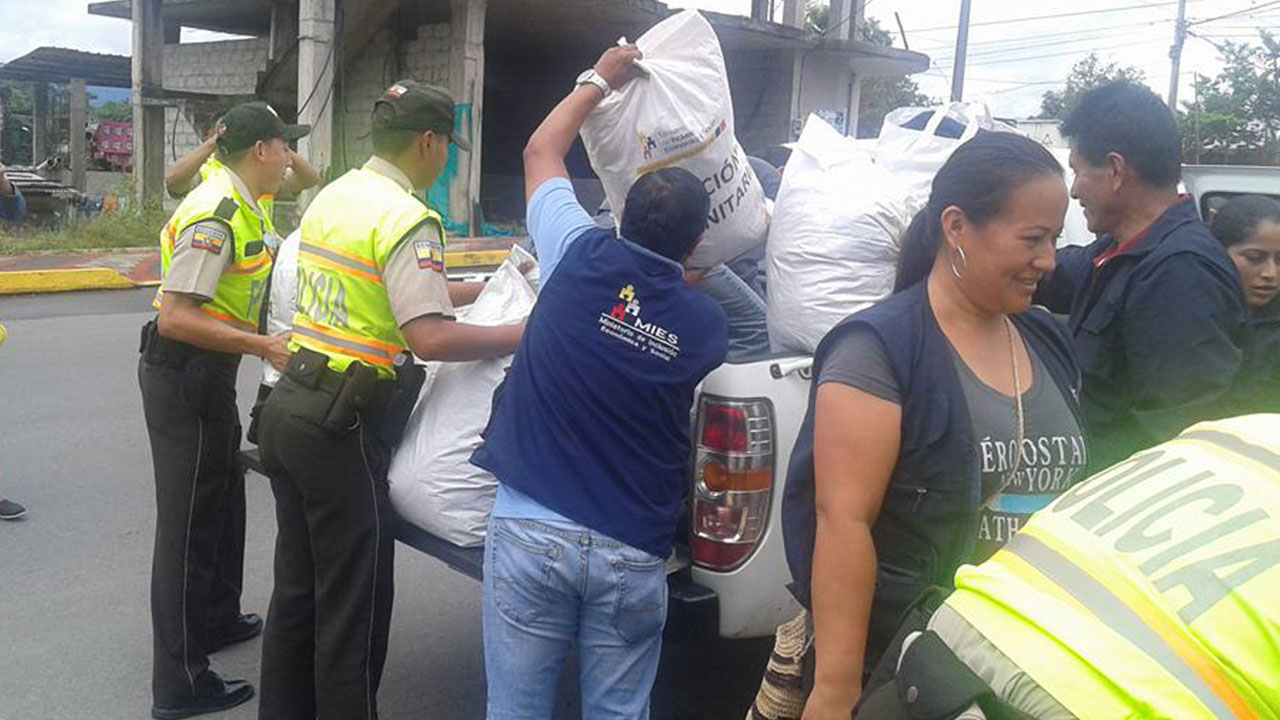 Las familias recibieron kits con alimentos no perecibles, ropa, aseo personal, limpieza y cocina. La atención se realizó en coordinación con otras instituciones estatales como la Secretaría de Gestión de Riesgos y el Instituto de Atención Social y Prioritaria Sumak Kawsay Wasi, de la prefectura de Napo.