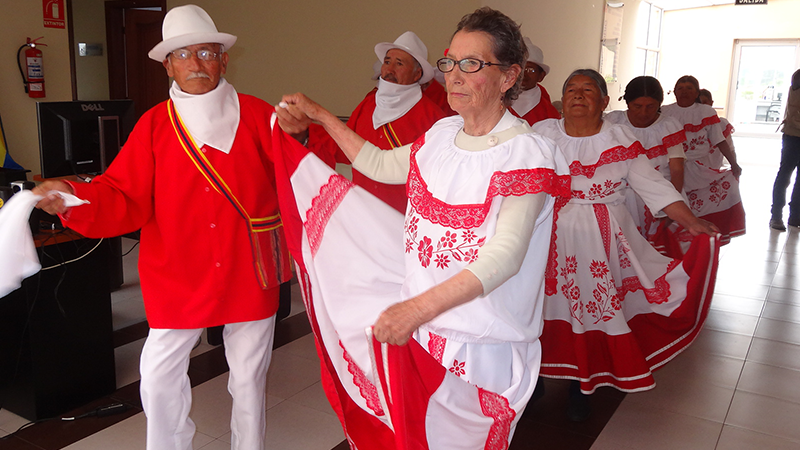 Adultos mayores de Chimborazo practican bailes tradicionales como parte de las actividades que buscan mejorar su calidad de vida.