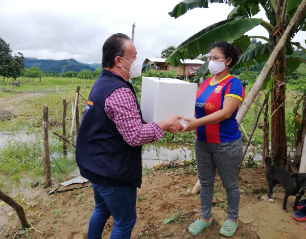 La ayuda llegó hasta los cantones de Chone y Tosagua, en donde el MIES entregó 80 kits de alimentos a las familias más afectadas. Equipo técnico se desplazó hasta las comunidades urbanas y rurales de esos cantones para entregar la ayuda respectiva, esta se la hizo en los domicilios de los hogares afectados y con todas las medidas de bioseguridad dispuestas por el COE Nacional.